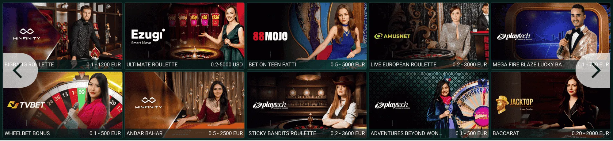 Auch zahlreiche Tischspiele sind in diesem Casino verfügbar. Wählen Sie einfach die Kategorie „Casino“ im Seitenmenü aus, um die Tischspiele zu durchsuchen. Es gibt also keine spezielle Kategorie für diese Spielart. Stattdessen sind sie unter einzelnen Kategorien wie Blackjack, Poker, Baccarat oder Roulette aufgelistet.