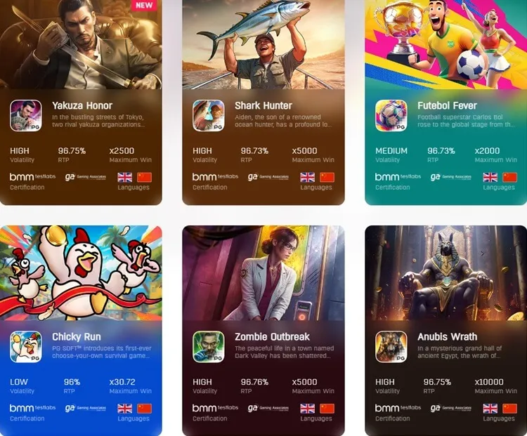 Como é possível inferir na revisão geral de cassino, a PG Soft trata-se de uma empresa responsável, legal e segura, com um amplo catálogo de títulos de slots e jogos modernos que conquistam os jogadores. É possível encontrar opções com temáticas variadas, retornos e volatilidades, além de grades e recursos diferenciados.