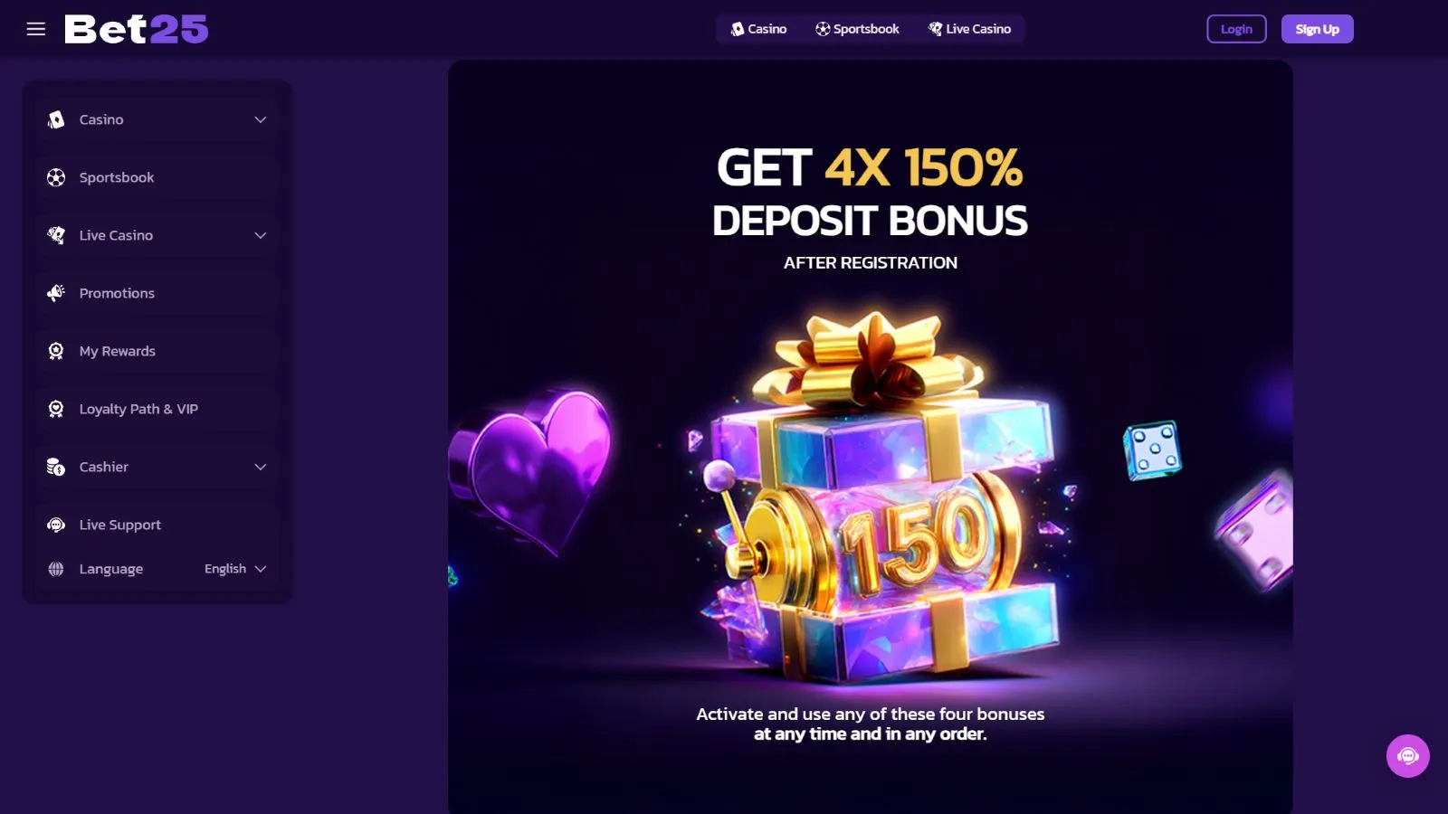 Bet25 is an online gambling site with thousands of casino games, a robust sportsbook, and generous bonuses. The platform was established in 2025, but has quickly become a go-to hub for gamers and sports bettors due to its excellent offerings.