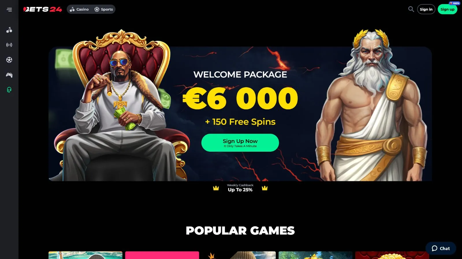 You’ll also find about 100 live casino games at Bets24, giving you many chances to interact with dealers and other players. Additionally, the gambling site offers scratch cards, crash games, Mines, Plinko, and many more.