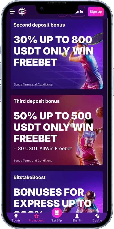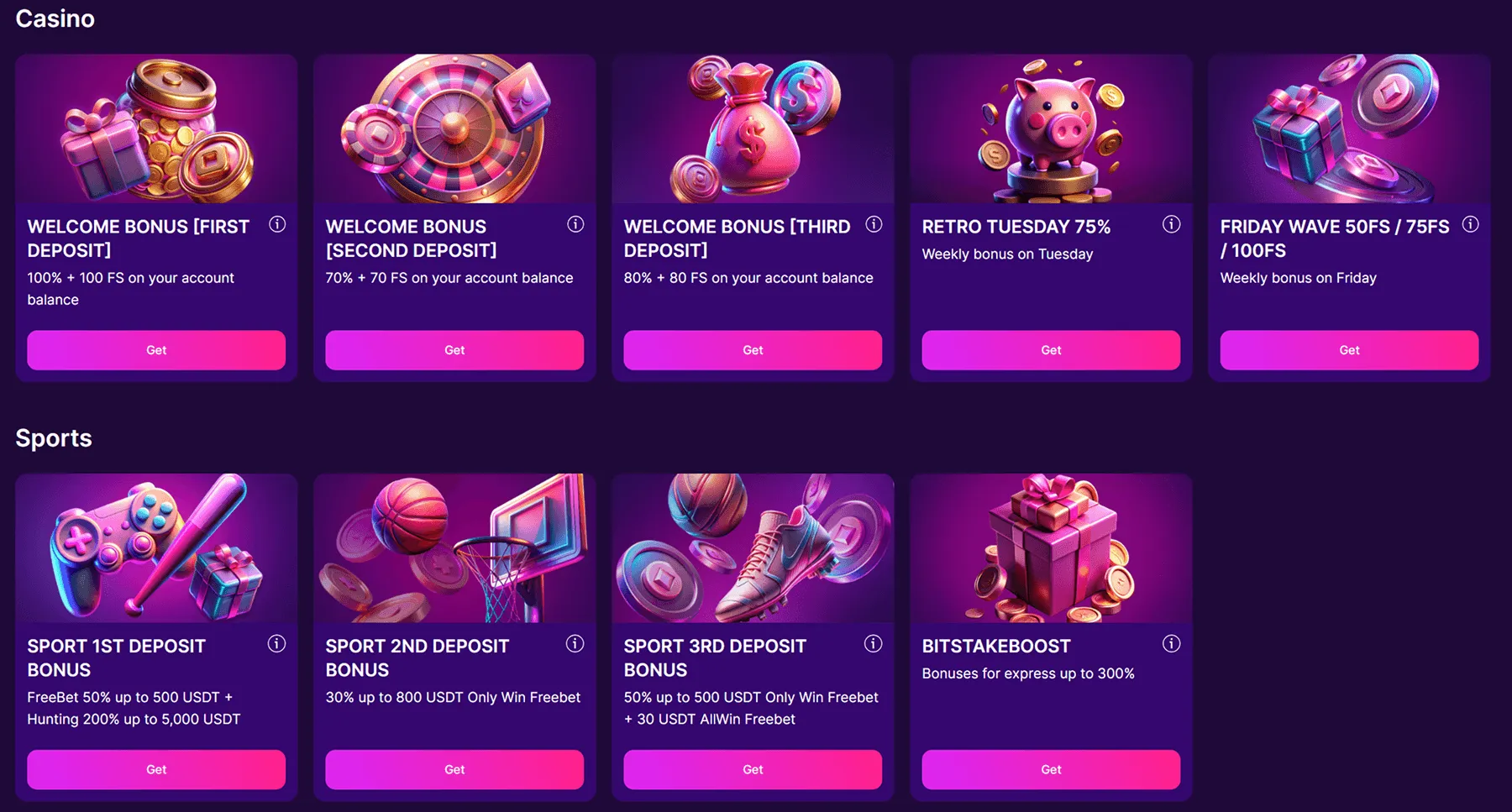 For the sports enthusiasts, there’s an option to claim up to 6,800 USDT to wager on your favourite events. Like the casino bonus, this package is split across your first three deposits.