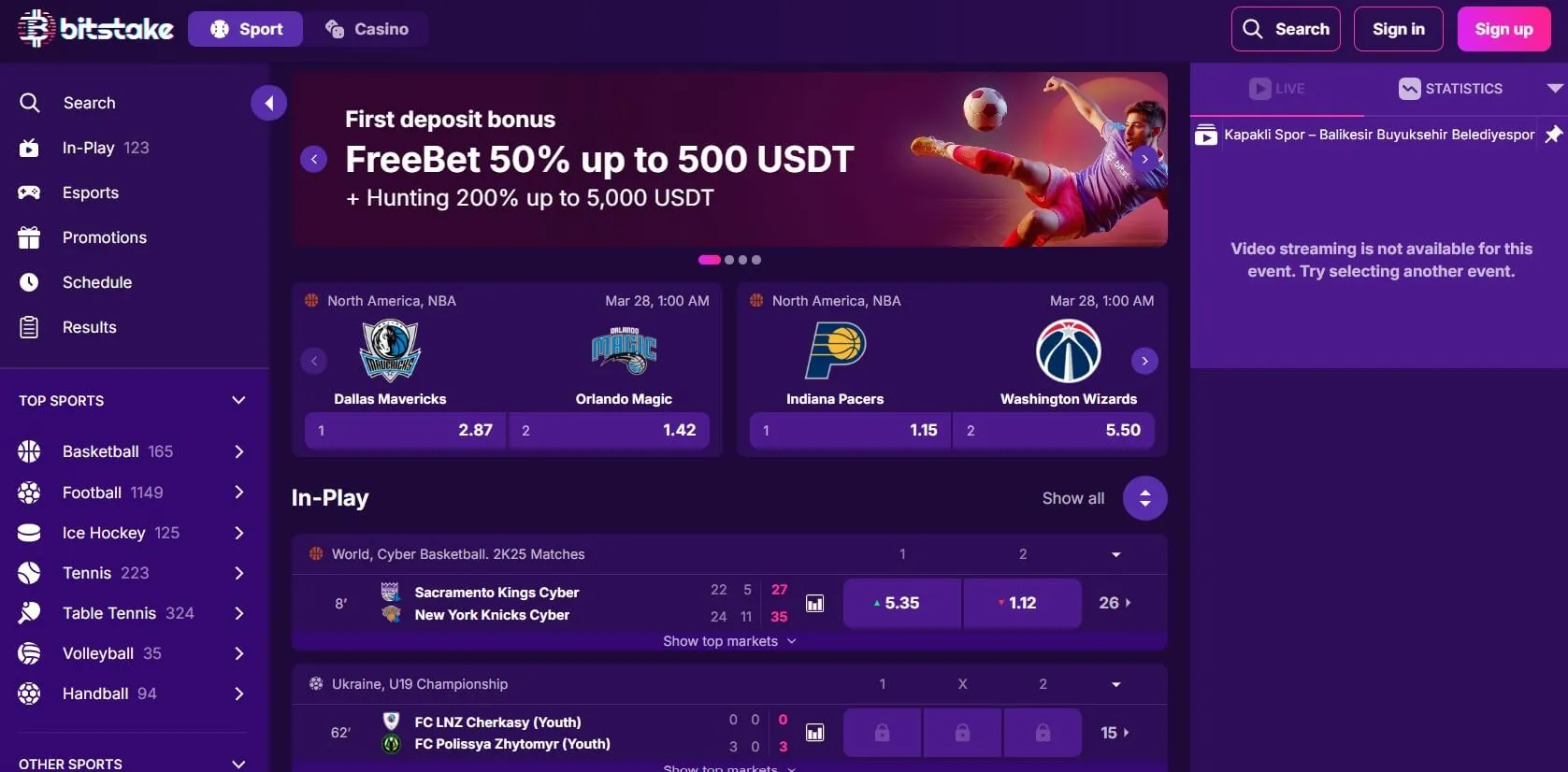 Sports fans can enjoy a wide range of exciting betting markets at Bitstake. The casino offers a robust sportsbook section filled with extensive options on sports and esports.