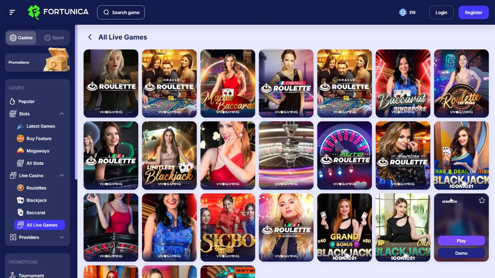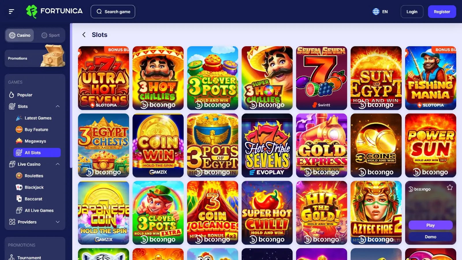 Fortunica Casino provides players with memorable sessions, offering hundreds of top-notch games in its lobby. This library is powered by 28+ software developers, including:
