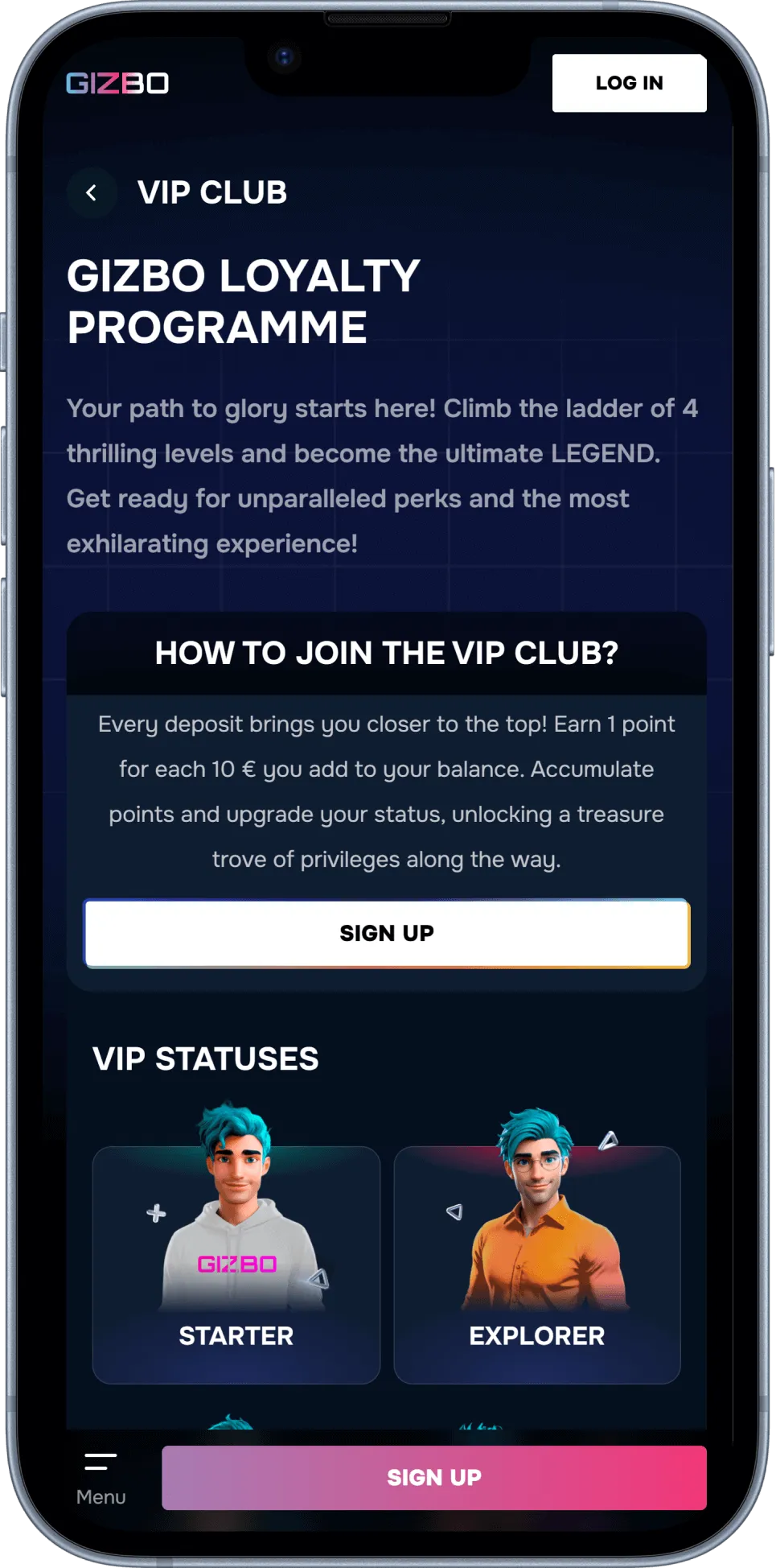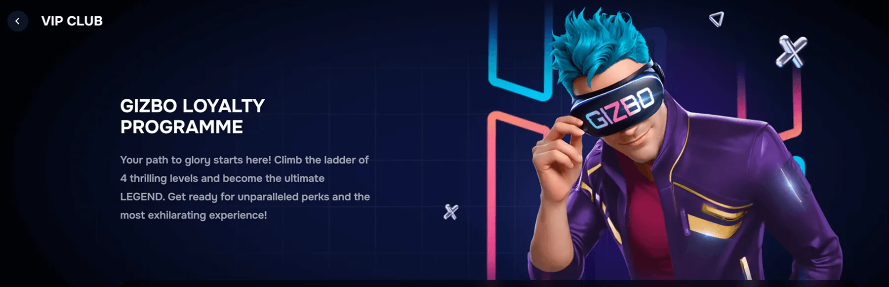 The casino offers 4 thrilling VIP levels, with exciting perks and bonuses. Your path to the Legend Status starts when you sign up at Gizbo.