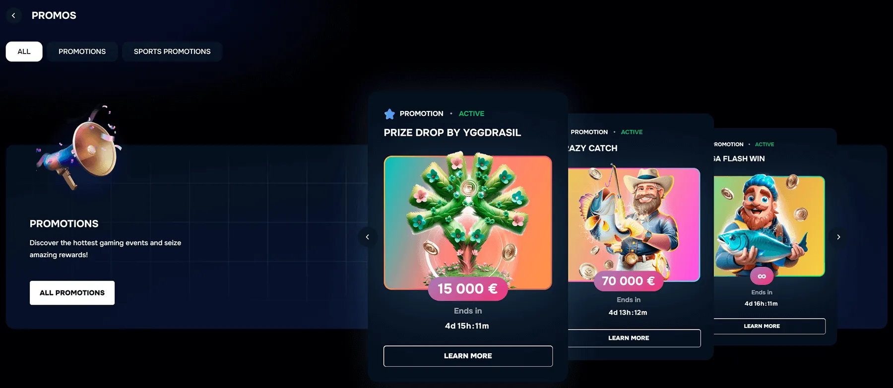 The collection of promos is also amazing, with generous welcome offers and engaging bonuses for existing members. Its large number of tournaments also keeps things lively and grants players opportunities for extra cash.