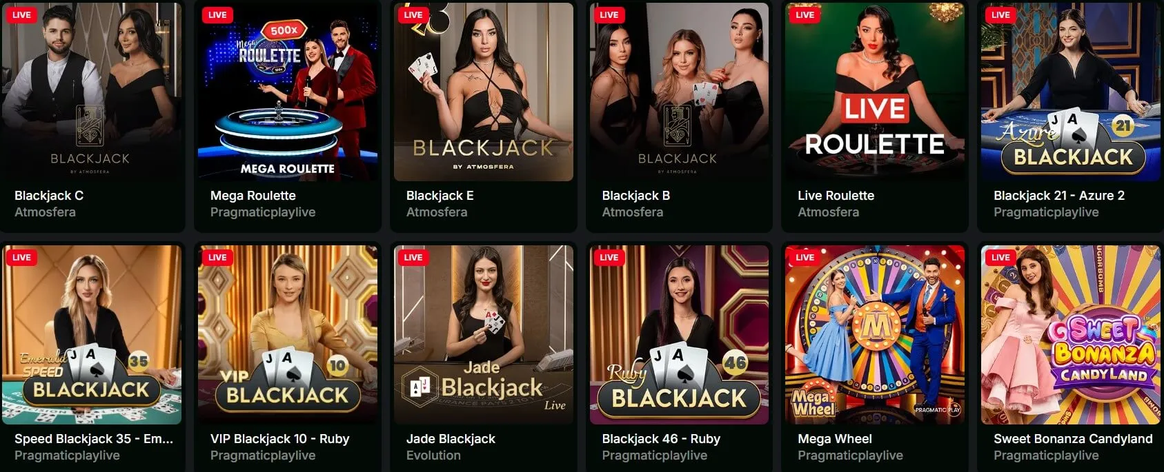 These are some live game titles at the casino: