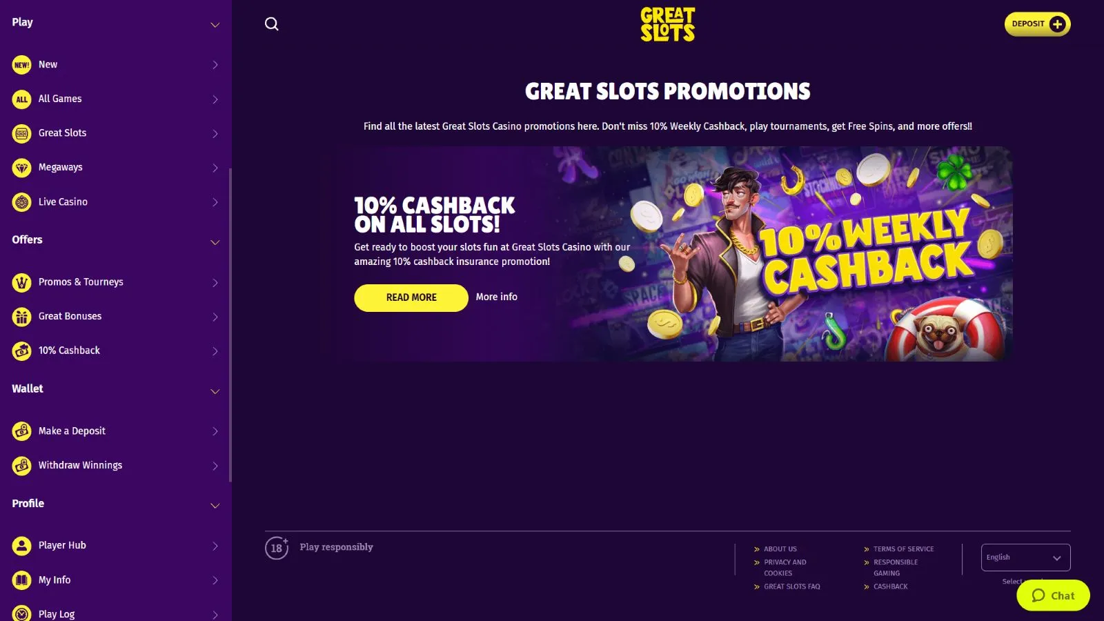 Launched in 2024, Great Slots is an online gambling site featuring a variety of games, excellent customer service, and numerous banking options. It supports English, Dutch, and Italian, and accepts players globally.