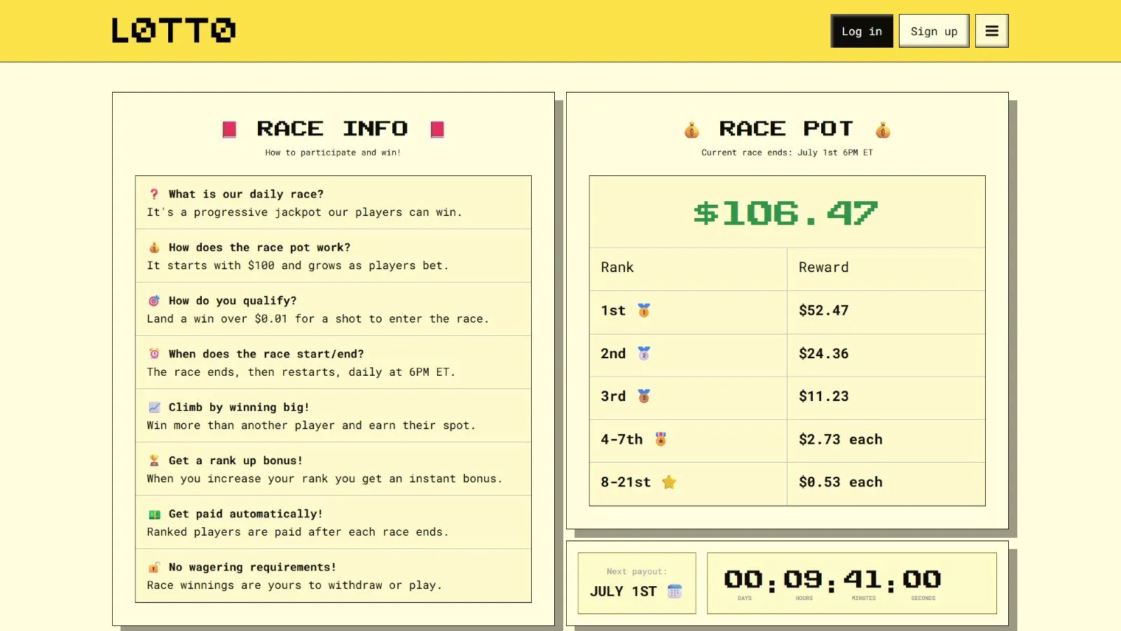 L0tt0 is a provably fair crypto casino with a retro look and a unique approach to gaming. The online gambling site runs entirely on blockchain, handling both its games and payments through crypto. Payouts are processed instantly on the platform, except for very large amounts, which usually take less than 24 hours.