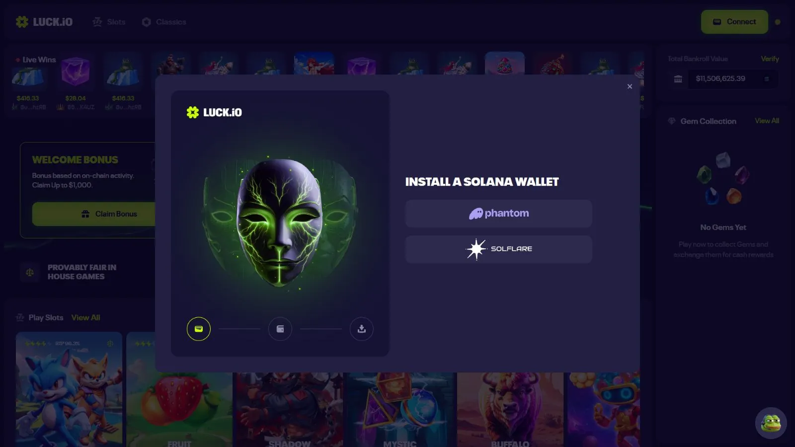 Luck.io is a blockchain gambling platform offering a range of casino games and a generous welcome package. It is powered by Proov Protocol to ensure fair game outcomes and provide full transparency. It supports players from several regions with VPN support enabled.