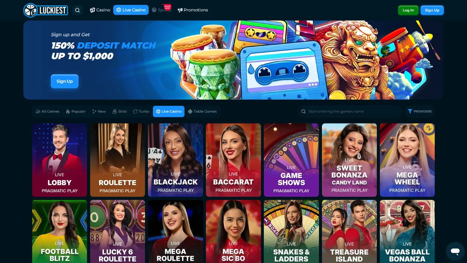 At Luckiest Casino, you’ll find thousands of gambling games across various categories, meaning there’s something for everyone. Its games are supplied by 15+ providers, including: