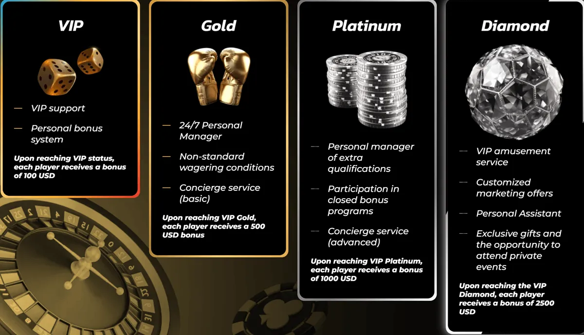 Actually, the VIP program of Megapari casino is actually the VIP cashback promotion. Every player at Megapari crypto casino is entitled to at least 5% cashback, and as you will be betting more, you will advance toward higher levels. In the VIP cashback ladder, there are 8 levels in total. Below, you can see more details about the experience points needed for each level and the cashback that you will be receiving it in percentages.