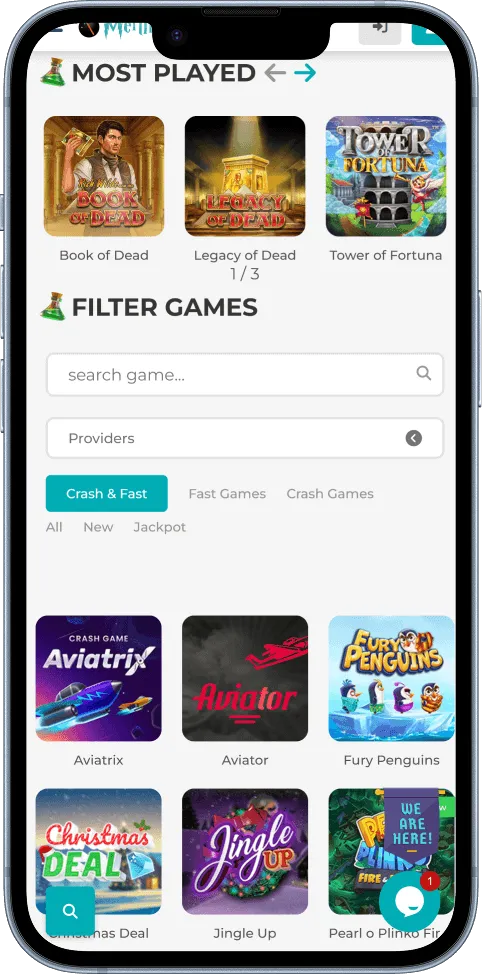 Over 20 game providers supply crash games to this platform. Evoplay, Mascot, Caleta, PopOk, Smartsoft, BGaming, GameArt, and Spribe are the top crash game providers.