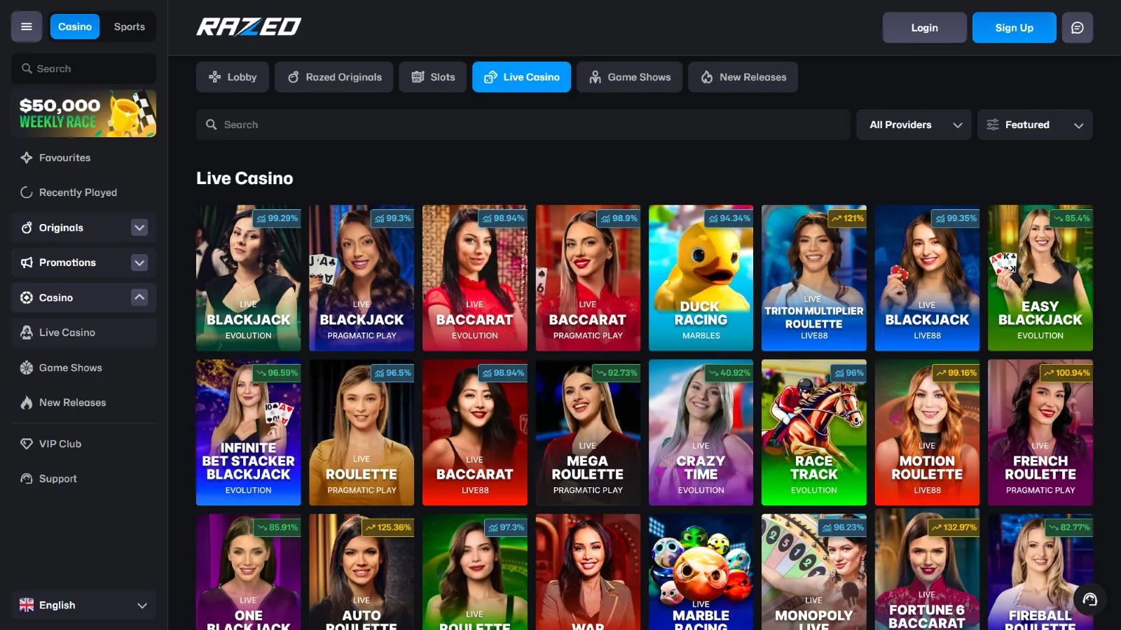 Razed Casino is an excellent iGaming platform that offers everything you need to enjoy gambling. Its lineup of games is of top quality, and its sportsbook offers competitive odds across various sports and popular events.