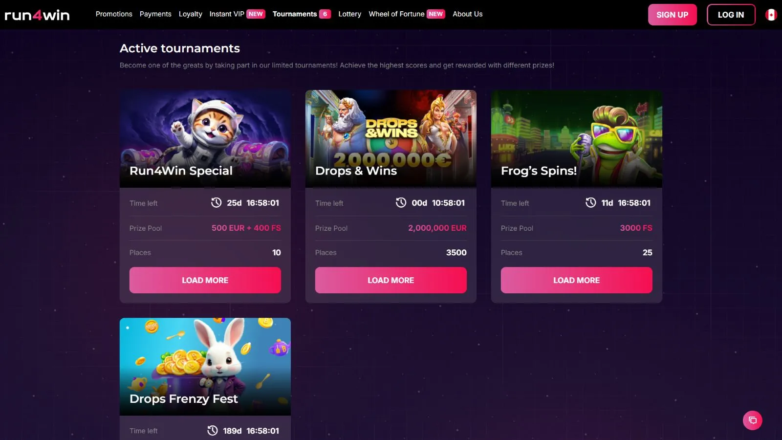 Always striving to bring excitement and competition to the table, Run4Win casino frequently hosts thrilling casino tournaments. These competitions are a fantastic opportunity for players to demonstrate their skills and earn substantial cash prizes. With just a single click on the “Tournaments” button located in the top bar, players can easily access and participate in these competitive events. So, get ready for some fierce competition and stand a chance to win some incredible rewards at Run4Win casino.