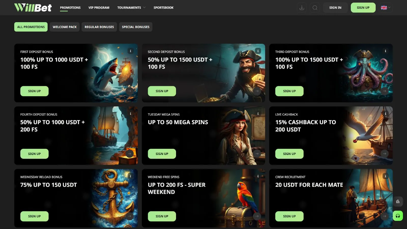 WillBet knows how to treat its players right, and it demonstrates this with bonuses. From the moment you sign up, you’ll find a mix of deposit offers, free spins, cashback deals, tournaments, challenges, and more. There’s always something to boost your balance or give you extra chances to play and win.
