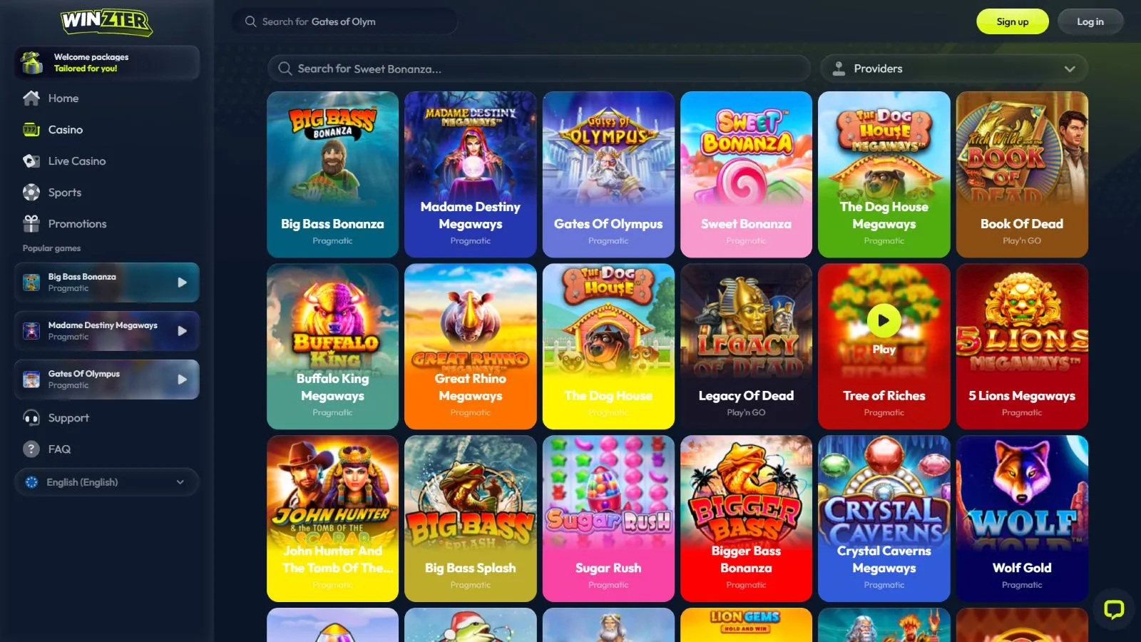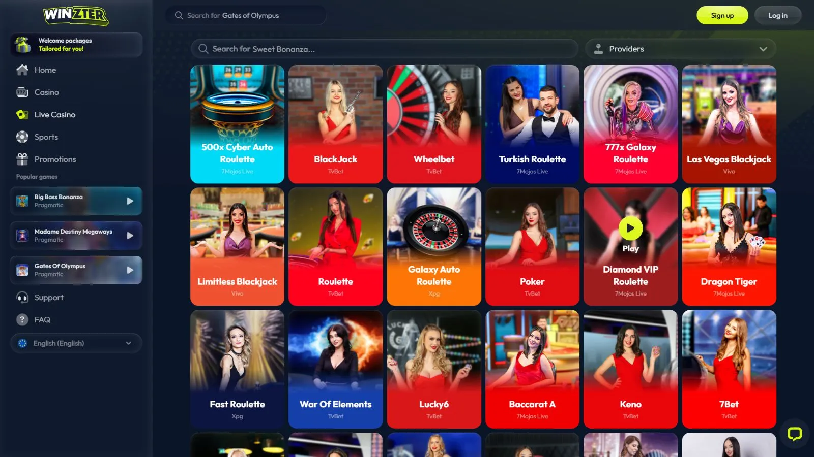 The Winzter Casino lobby is loaded with hundreds of games from over 24 software providers. It offers slots, crash games, instant wins, table games, video poker, and live casinos. Some of the providers are: