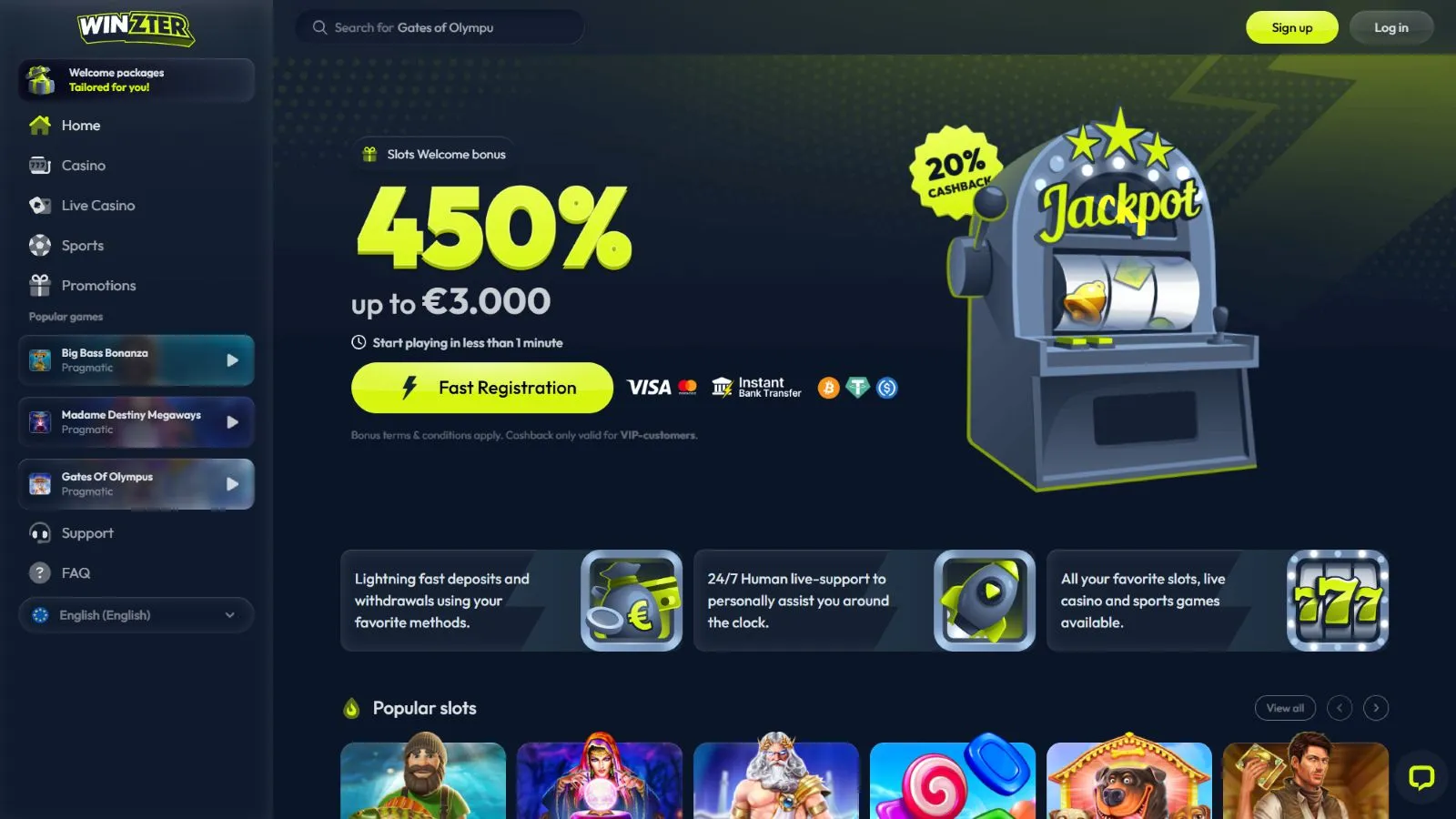 Winzter is owned and managed by Robocse SRL, a company registered in Costa Rica. The site is licensed and regulated by the government of the Autonomous Island of Anjouan. It offers 24/7 support via live chat and email.