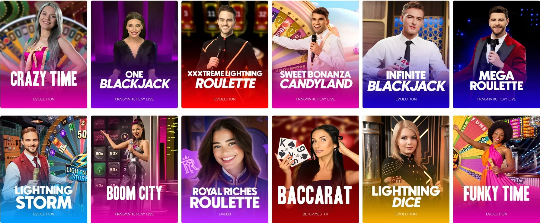 At the moment, you’ll find 40+ live blackjack, 40+ live roulette, 40+ live baccarat, 10+ live poker, and 12+ gameshows. There are also live Dragon Tiger, Live Teen Patti, Live Andar Bahar, Live Craps, and Live Sic Bo.