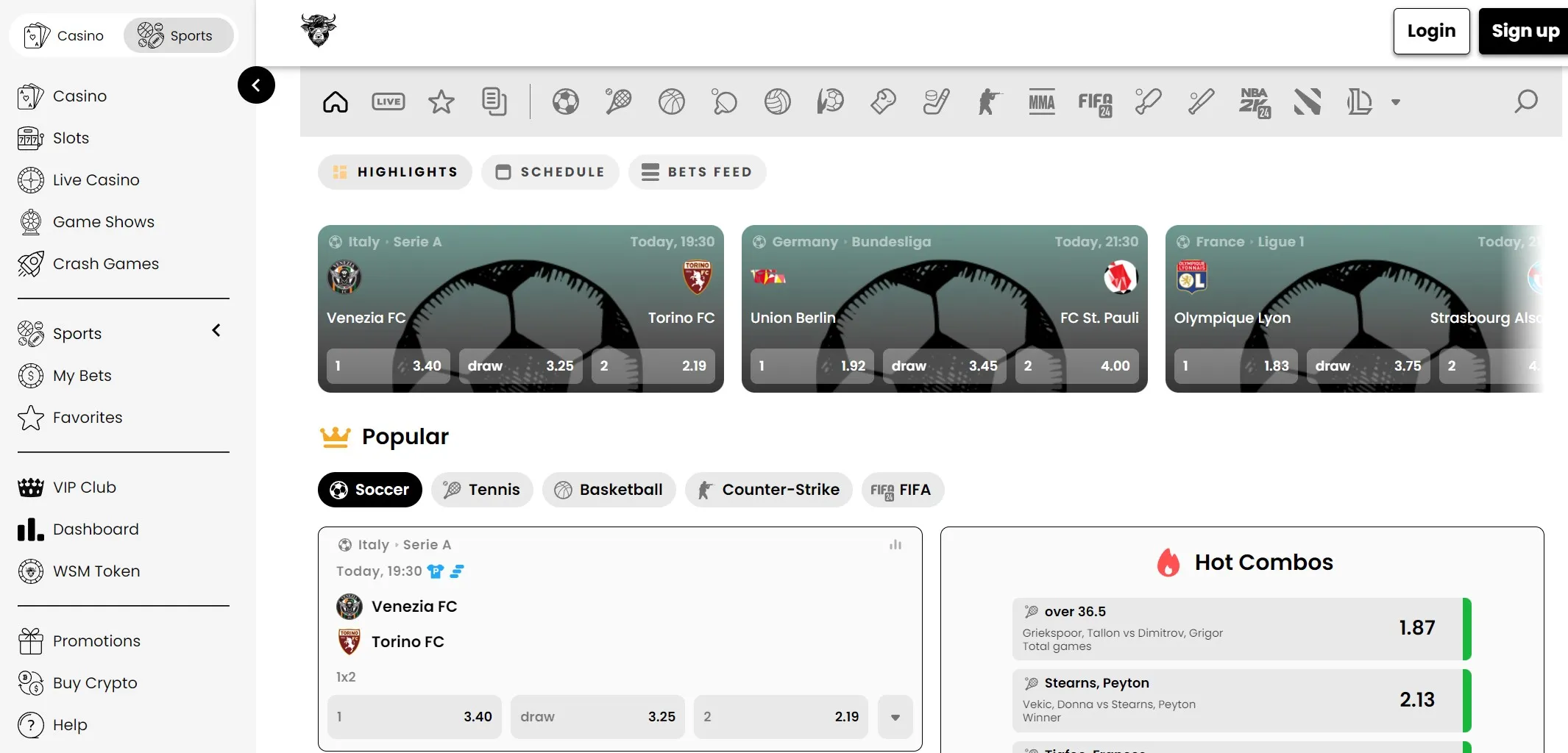 Searching for a fresh online casino to explore? WSM Casino might just be what you need. This excellent crypto iGaming site offers over 5000 casino games and thousands of sports betting markets. The website is beautiful and easy to navigate, complete with a nice welcome bonus for both casino and sports gamblers.